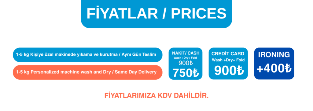 Dear customers, our service is personalized. Your laundry is washed and dried in special machines at the temperature you specify. Your laundry is not washed with other people’s laundry. Therefore, a cleaner and more hygienic wash is achieved.